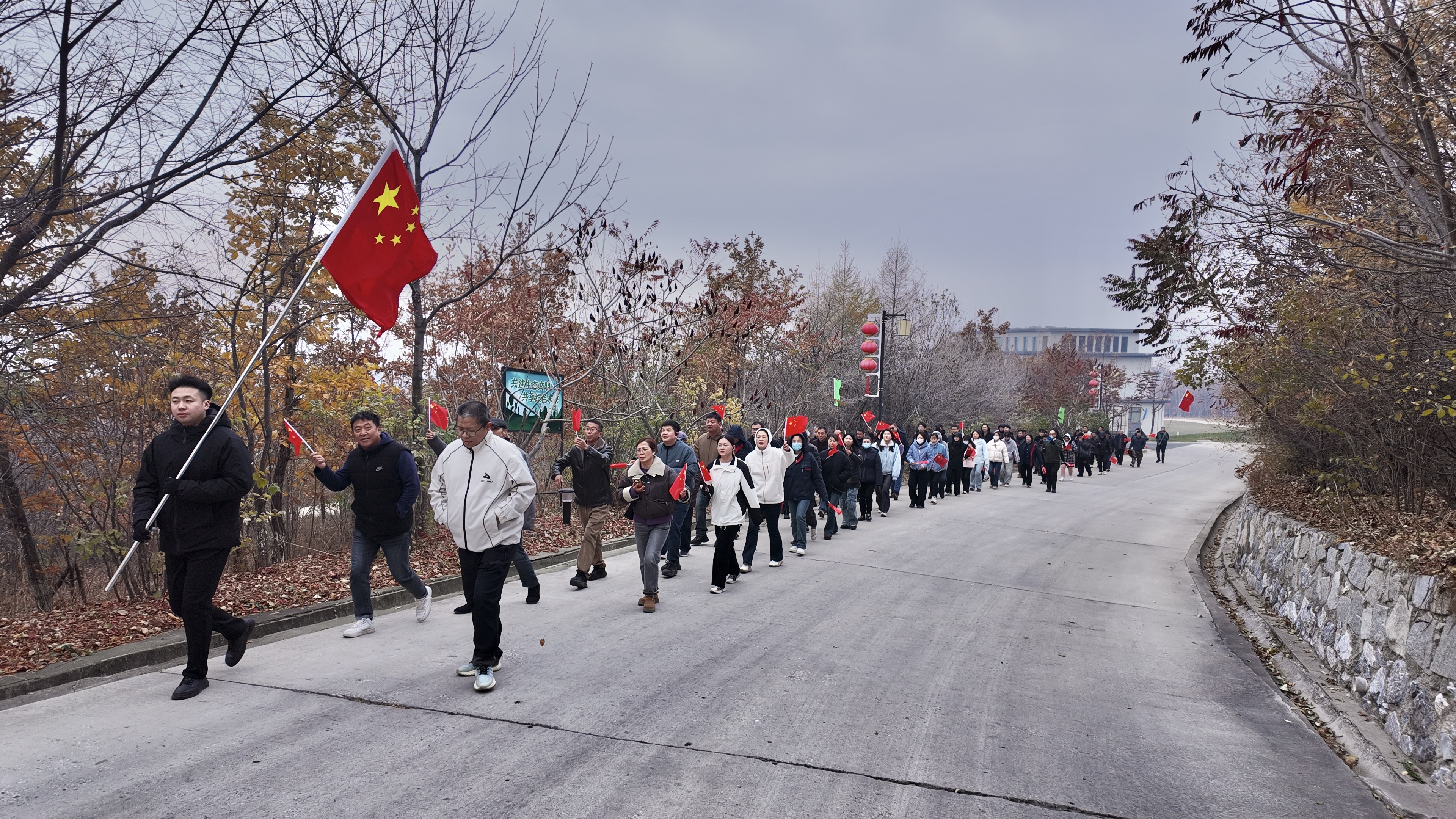登山途中,山间回荡着大家的欢声笑语。面对陡峭路段,员工们互帮互助、互相鼓励,有人主动搀扶体力较弱的同事,有人分享登山小技巧,每一个温暖瞬间都彰显着三河人团结奋进的精神风貌,让登山之路充满温情。