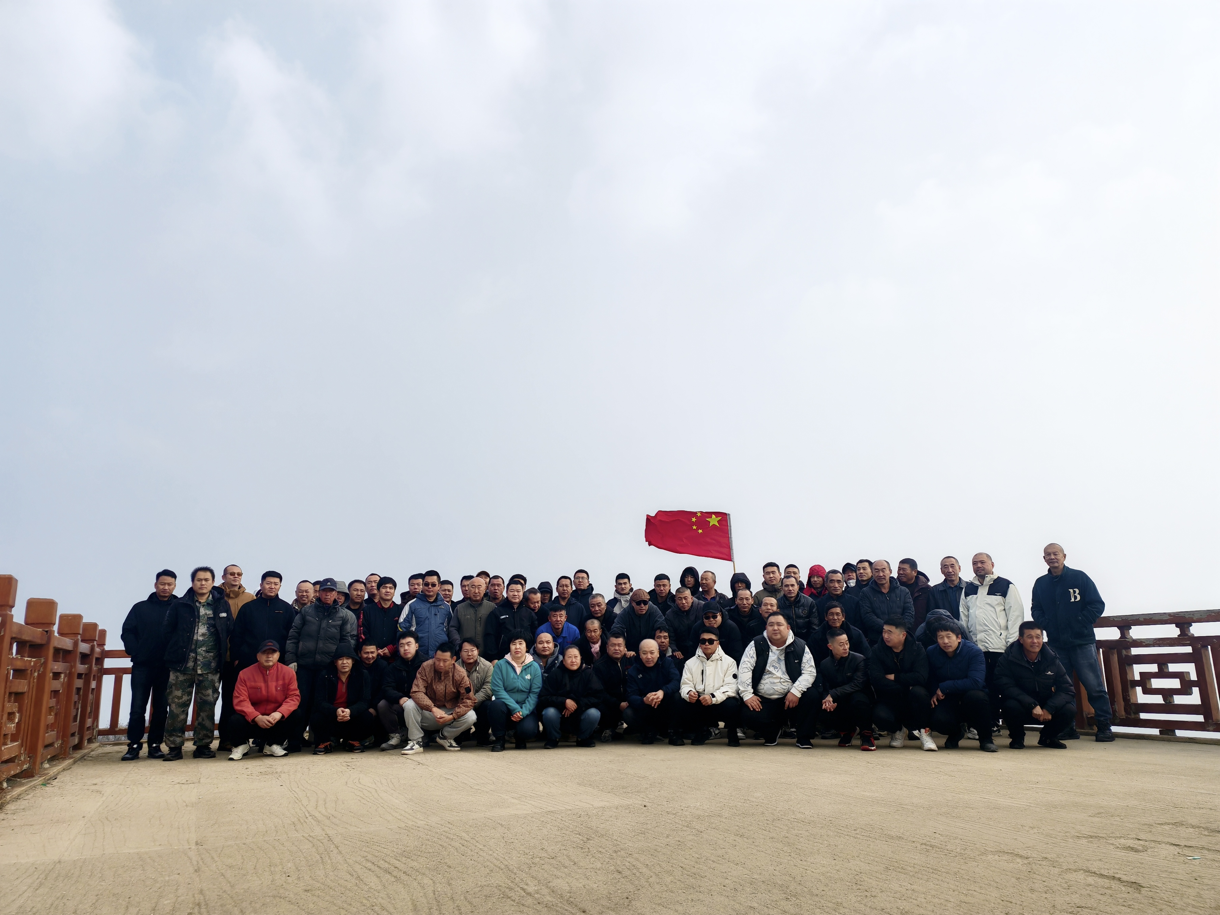 经过努力,大家陆续登顶!凭栏远眺,秋日盛景尽收眼底,欢呼声在山间久久回荡。大家相携相拥,以镜头定格此刻的雀跃与荣光。远在岫岩磐龙玉加工厂的同事们,亦登高望远,以同一份向上的热忱,与我们遥相呼应,共寄深情祝福。